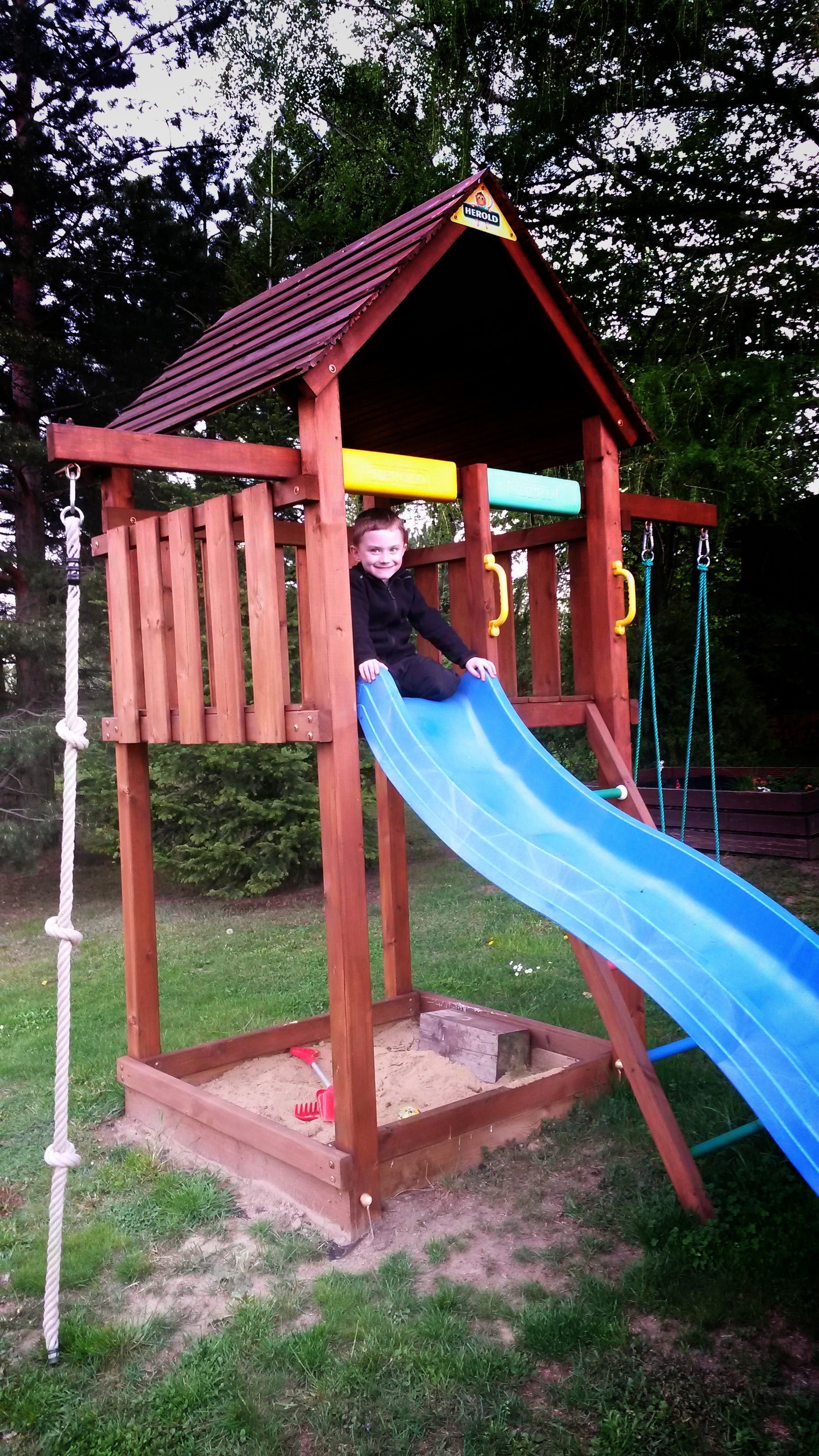 Hřiště je vyrobeno českou firmou Herold a splňuje bezpečnostní certifikát EN 71.