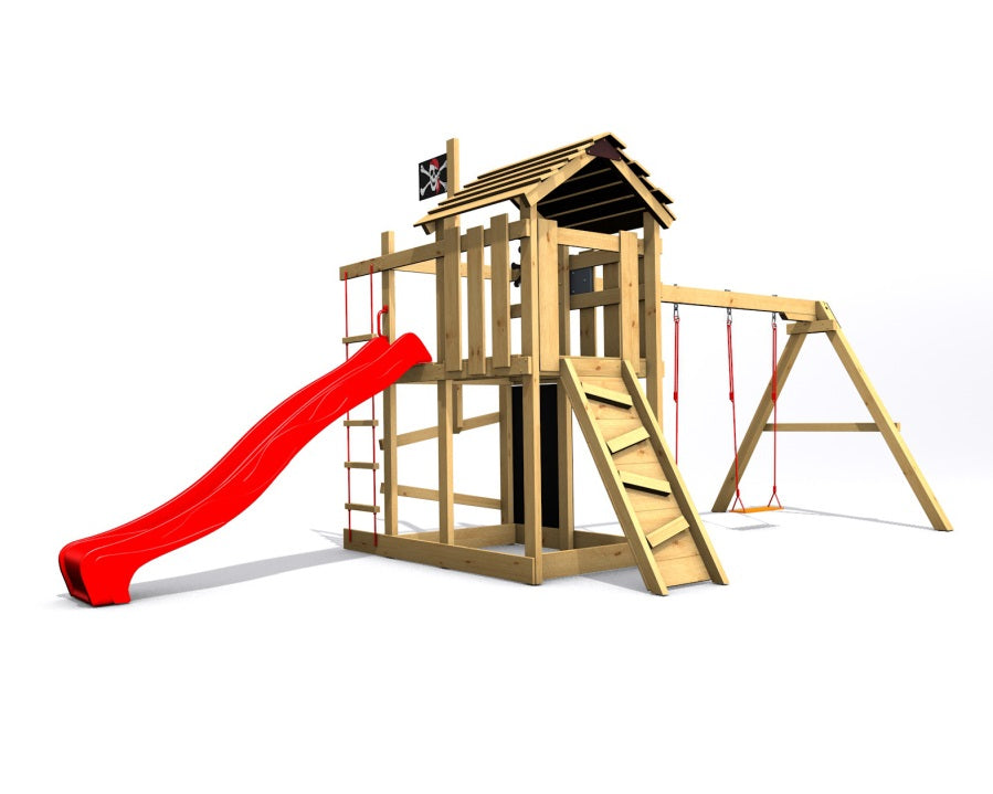 Představujeme krásné dětské hřiště Malý pirát RED z ekonomické řady Eko-Line. Naše hřiště dopřeje Vašim dětem tu správnou pirátskou zábavu a pořádný trénink síly a rovnováhy, kterou potřebuje každý správný pirát.