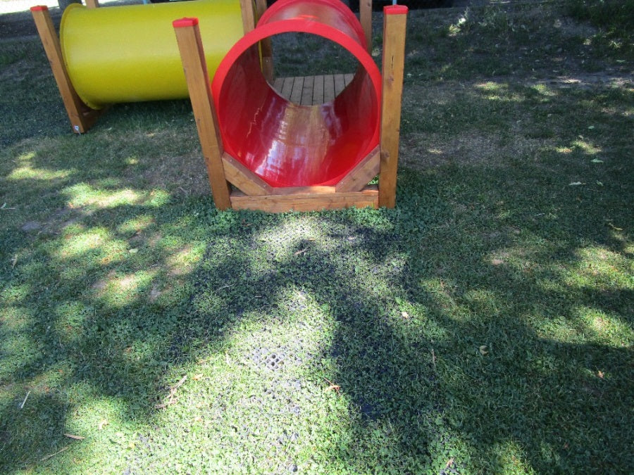 Unikátní dopadové plochy z recyklovaného materiálu, které obsahují i zpomalovač hoření a jsou tak chráněny proti vandalismu. Materiál je stabilní proti UV záření a brání uklouznutí.