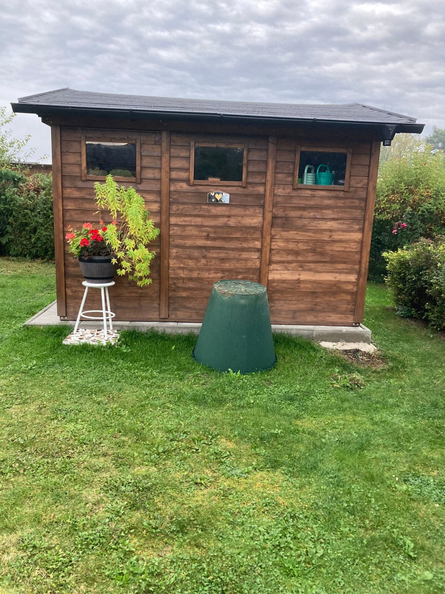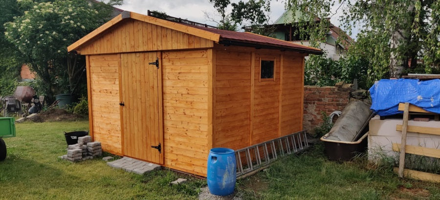 Doporučujeme zahradní domek natřít vhodným nátěrem Pro zvýšení životnosti domku je nutné opatřit dřevo ochranou. Jako vhodný nátěr můžete využít lazury určené pro nátěr jehličnatého dřeva. Tyto nátěrové hmoty naleznete v naší nabídce zde.