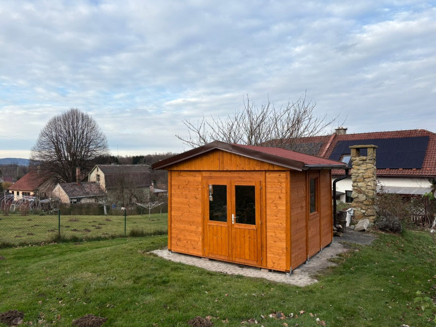 Bytelná konstrukce z masivních lepených hranolůStojna stěny: 90 x 90 mm ze čtyř lamel lepený hranol, vyrobený v pohledové kvalitě ze severského smrku. Věnec a spodní rám: Masivní 45x90 mm hranol, vyrobený v pohledové kvalitě ze severského smrku. Spojovací materiál: Vruty 6x100mm a 6x120mm bezpečně spojí celou konstrukci. Používáme prémiový spojovací materiál od prémiového výrobce Würth! Okno: 4 mm sklo, otevíratelné s ventilačkou. Robustní výplň oken odradí leckterého zloděje a přitom zajistí dostatek světla v domku. Dveře: dvoukřídlé, sklo 4 mm, zamykatelný cylindrický zámek, práh z nerezové oceli Základ je bytelná konstrukce, na které jsme nešetřili. Lepené 4D hranoly a prémiový spojovací materiál jsou zárukou pevné konstrukce a vaší spokojenosti. Zahradní domek Vám bude sloužit řadu let bez únavy materiálu. Odolá povětrnostním vlivům. Můžete se spolehnout, že Vaše nářadí a uskladněné věci budou v bezpečí před větrem, deštěm i sněhem.
